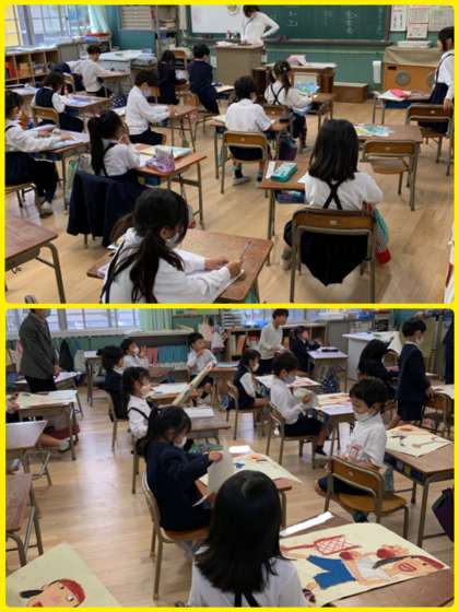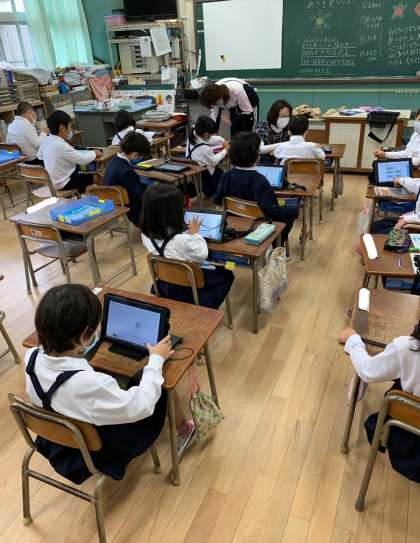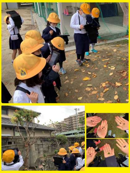 急に肌寒くなってきました。でも、秋を見つけるにはぴったりの季節です。イチョウ、キンモクセイ、ざくろ、かき、オシロイバナのたね…、たくさん見つけていました。タブレットを使いこなす1年生たちです。