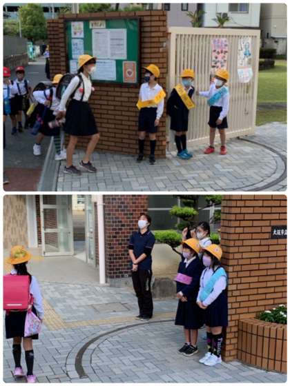 今日から3年2組の5名が「あいさつ隊」に来てくれました。6年生の先輩たちと一緒に元気にあいさつをしてくれました。ありがとう。