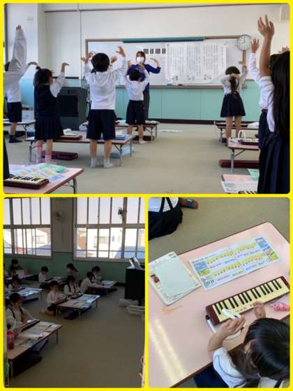 2組が生活科ルームで音楽の学習を行っていました。「よろこびのうた」を鍵盤ハーモニカで演奏していました。とてもやさしい音色を響かせていました。すばらしいです。また、音階を体でも感じられるよう、動きでド・ソ・ファ、と表現していました。