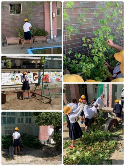 毎日、1時間目が終わった休み時間に水やりをしてくれている園芸委員会のみなさん。そのおかげで、植物が育ち、理科や生活科の学習もできています。いつもありがとうね。