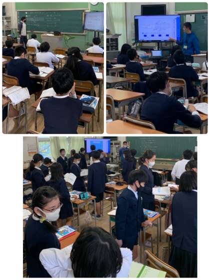 反比例する2つの数量には、どんな関係があるのか。比例の関係とも比較しながら取り組んでいました。3クラスそれぞれが、様々な方法でトライしていました。焦らず、じっくりと考えていきましょう。
