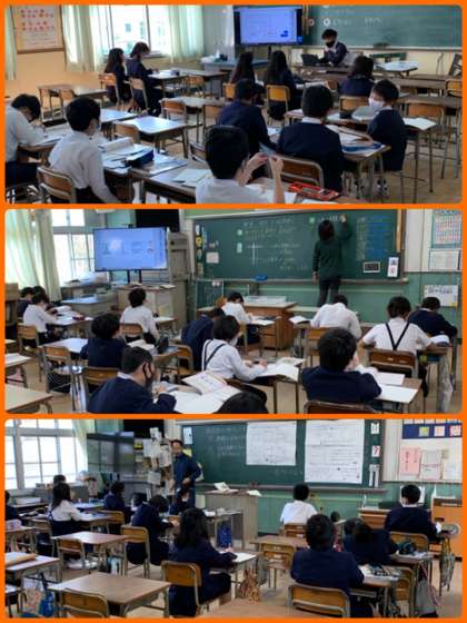 「四角形の特ちょうを調べよう」の学習に入りました。3クラスに分かれて、今日は2本の直線の交わり方を調べていました。この学習は定規、三角定規を使います。きれいに消せる消しゴム、えんぴつもとがったものが必要です。おうちでもお声かけをよろしくお願いします。