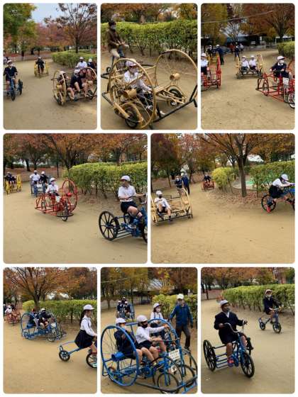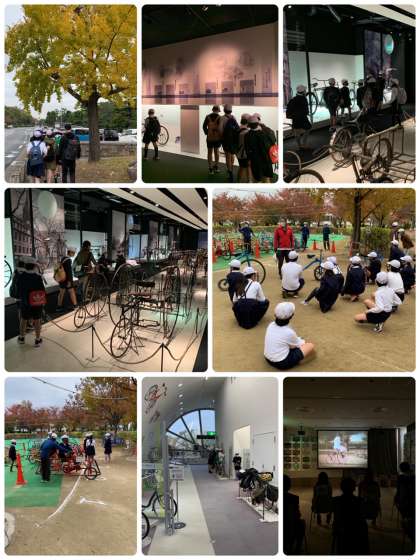 到着してから「自転車教室」チームと「自転車博物館」チームの2つに分かれて体験しました。普段は乗ることがなかなかできない自転車にも乗って、子どもたちもとても楽しそうでした。博物館でも貴重な歴史ある自転車を見せてもらい、クイズラリーもしました。