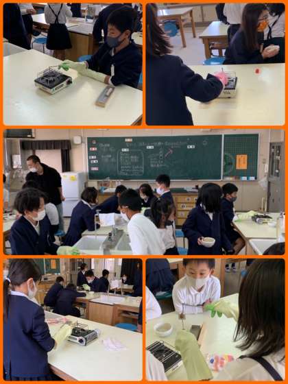 「金属の温度と体積」の学習。「金属も、温度によって体積が変わるのだろうか」について実験を行いました。