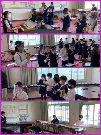 2時間目、音楽室から軽快な音楽が聞こえてきます。メロディーにつられて音楽室に向かうと、2組の子どもたちの「ゆかいなまきば」の演奏でした。私が来たということでもう一度披露してくれました。嬉しかったです。