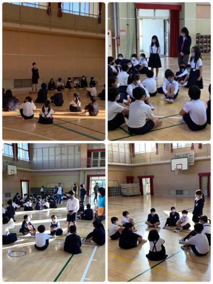 先週から始めたペア学年集会。今日はその第2弾、2年生と4年生の交流を行いました。初の顔合わせですので、今日は名前と好きな食べ物を伝える自己紹介をしました。リードする側になった4年生。初めは、少し照れくさそうでしたが、グループをリードしながら進めてくれました。ありがとう!きっと2年生にも、その優しさが伝わりましたよ。
