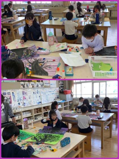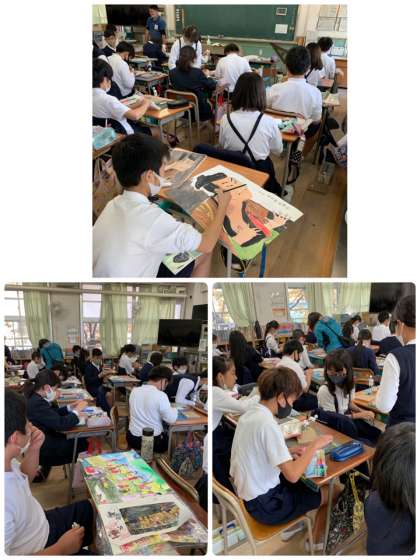 今日もいくつかの学年が図画工作の学習に取り組んでいました。いったい、どんな作品ができあがるのかな? 楽しみです。