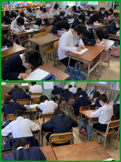 今日は5年生が漢字王にチャレンジ。朝の「みなみタイム」の時間に行いました。5年生になると、漢字も難しい。それでも、集中して取り組む姿はさすがです。ていねいに書くことができていました。よくがんばりました!