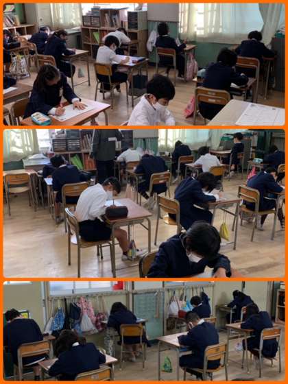 教室に入ると、すぐに「この漢字は、ここは出てもいいのですか?」と質問の嵐。子どもたちの気合いが伝わってきました。字もとてもていねい。終わってからも、何度も指で書いてたしかめ。その姿勢、すばらしい!よくがんばりました!