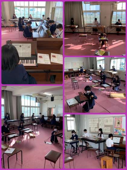 「エ〜デルワ〜イス♪ エ〜デルワ〜イス♪」のメロディーが音楽室から聞こえてきます。ようすを見に行くと、1組の子どもたちの合奏でした。感染症拡大の知らせを受け、リコーダー以外の楽器を選んで、間隔もあけて取り組んでいました。どんどん練習をしていきましょうね。