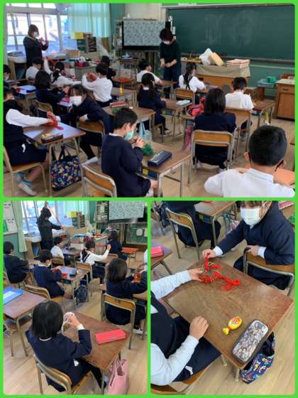 今日は1組の子どもたちが「クリスマスリース」づくり。目を輝かせて取り組んでいました。ステキな作品ができあがりそうです。サンタさん、もうすぐできるからね。待っててね〜。