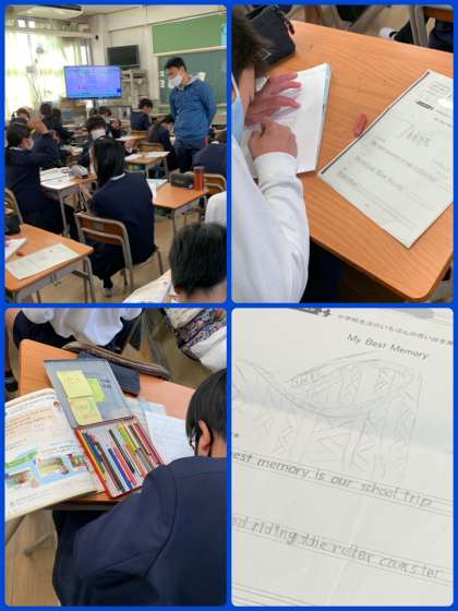 「小学校生活のいちばんの思い出を発表しよう」をテーマに外国語の学習に取り組んでいました。やはり修学旅行のできごとが多かったようです。