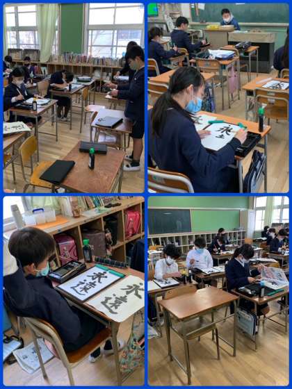 書写 「永遠」の2文字を「全集中」で取り組んでいました。習字に取り組むのも、あと何回あるのかなあ…、思わずしみじみとしてしまいました。