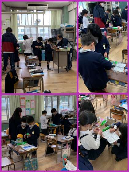 理科「電気であかりをつけよう」の学習。1組の子どもたちが「まめでんきゅう」セットの組み立てに取り組んでいました。先生に相談に行ったり、友だちから教えてもらったりしながら、どんどんできあがっていきます。「あ、そうか!」「なるほど!」発見の連続です。オンライン学習では、できない学習です。こういった取り組みをできるだけたくさん、今後も続けていきたいです。