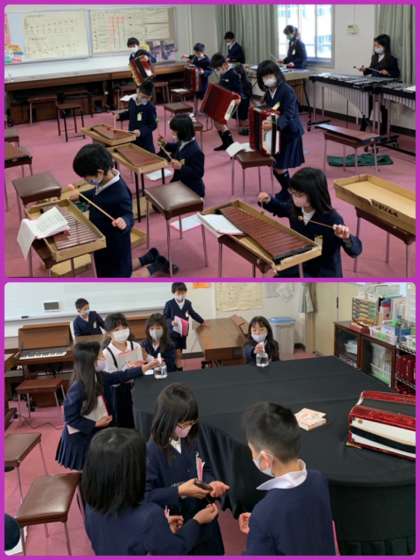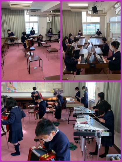 音楽室で合奏に取り組んでいる1組のみなさんです。何度も繰り返し練習していました。どんどんうまくなっています。