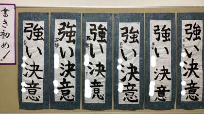 金曜日に紹介した5年生の書き初め。早速、階段に掲示されていました。思いが伝わってきます!その決意を忘れないでね。