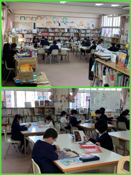 2時間目、2年1組が図書室で静かに読書をしていました。3学期もたくさん本を読んでね。
