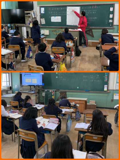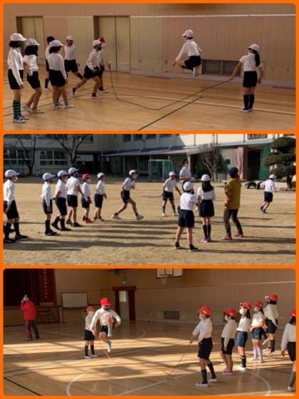 体育は運動場と講堂に分かれて「大なわ」に取り組んでいました。上達ぶりにびっくりです!
