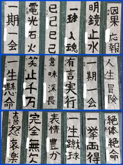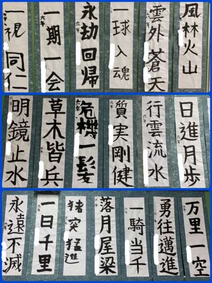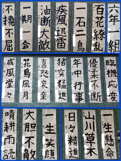 小学校生活最後の書き初めは、一人一人が思いを込めた4文字を書きました。