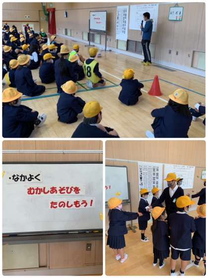 そこで、6年生が「先生役」となり、1年生にむかしあそびを教えてくれました。