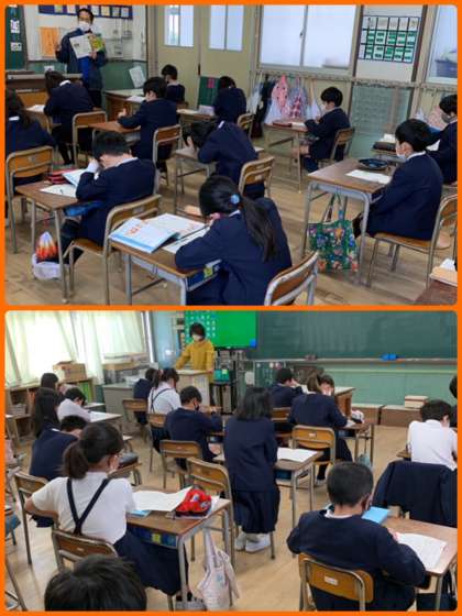 教室で、ビゼーの『ファランドール』を鑑賞していました。2つの旋律の重なりをどう感じたかな? ぜひ聞いてみてください。