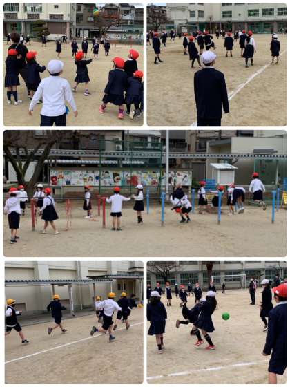 今日は、一日曇り空。それでも子どもたちは、元気に休み時間を過ごしていました。1年生のドッヂボール、当ててもキャッチしても大はしゃぎです。