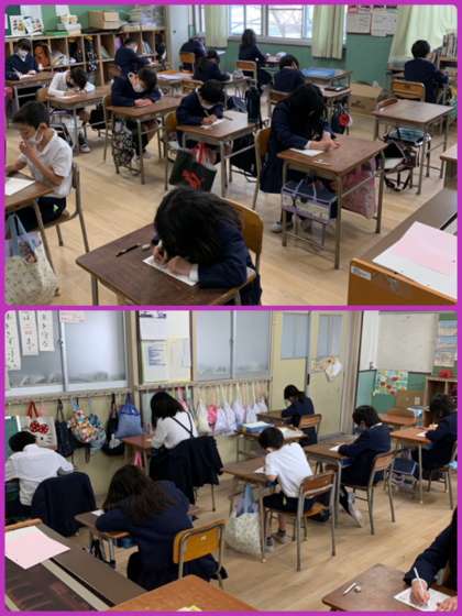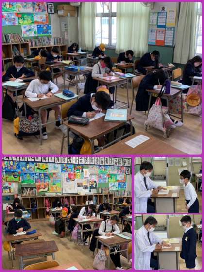 3年生の2クラスが「漢字王」にチャレンジしました。“待ってました”と黒板に書いてくれるほど、今回も気合いを入れて取り組んでくれました。