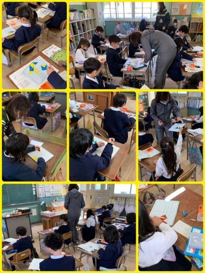 「かたちづくり」の学習に取り組んでいました。これからの学年でも学習する平面図形。その基礎となる学習です。