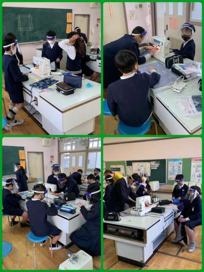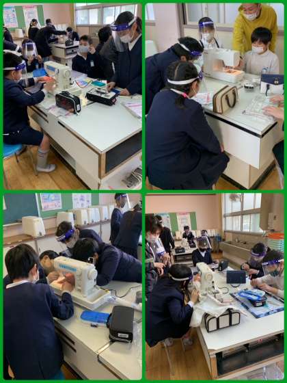 今日は家庭科室でミシンを使って、「ランチョンマット」づくりに取り組んでいました。ていねいに仕上がるように、一つ一つ確認しながらすすめていきましょう。