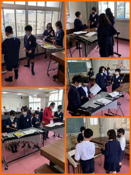 4年1組音楽の学習は、木琴と鉄琴で「茶色のこびん」の演奏に取り組んでいました。前の学習のときに担当した楽器とはちがう楽器を今日は担当していました。そうすることで、自然と教え合いが生まれます。ペアごとでていねいに教えていました。すばらしい!