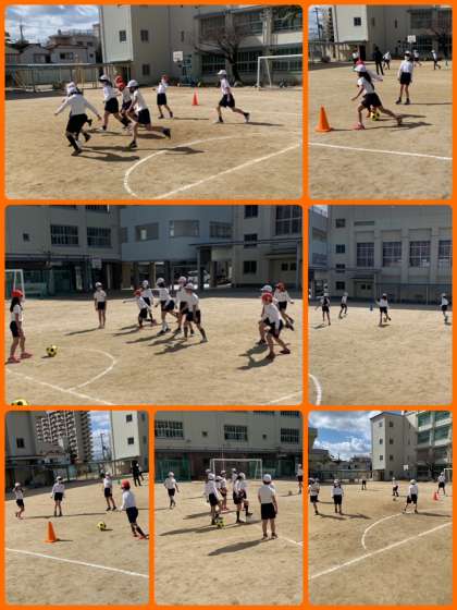 2組の体育は運動場でサッカーに取り組んでいました。凍てつくような寒さのなか、声をかけ合い、しっかりと体を動かしていました。よくがんばりました。