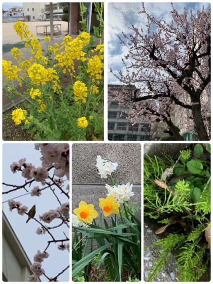 あんずの花も満開に近づいてきました。メジロさんも遊びに来てくれました。つくしも顔を出しました!
