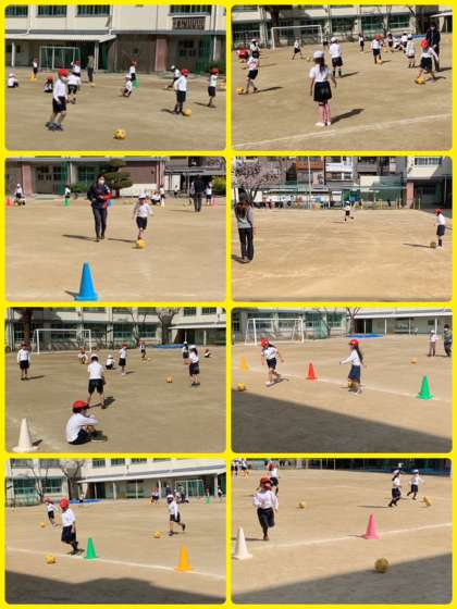 今日も「ボール蹴り」に取り組んでいました。いきいきとボールを蹴り、そして懸命にボールを追いかける子どもたち。本当に成長しましたね。