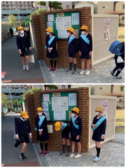 あいさつ隊水曜日担当の6年生は今日が最終日。毎週、本当によくがんばってくれました。中には4年生から毎年頑張ってくれた人もいます。本当にありがとう!6年生として最後まで大変立派な姿勢を見せてくれました。