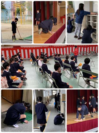 明日の入学式がすばらしいものになるように、新6年生が講堂の準備や1年生の教室のそうじをしてくれました。テキパキと活動するみなさんを見て、最高学年の自覚を感じました。ありがとう!