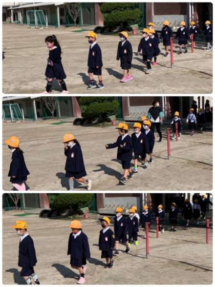 5学年が整列して待ち受ける中、1年生が元気に入場してきました。