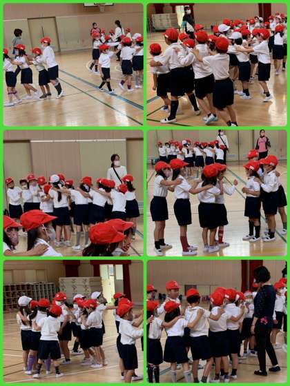 まずは、自分たちが1年生のときに育てた植物から採れた「たね」を1年生にプレゼント。そして、「じゃんけん列車」などをして遊びました。1年生も2年生もにっこり笑顔がいっぱいの楽しい時間となりました。