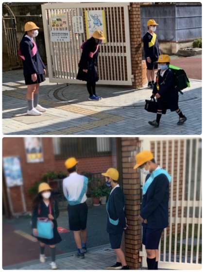 6年生6名が「おはようございます!」と迎えてくれました。1年生は、はじめての光景にびっくりしていた人も。