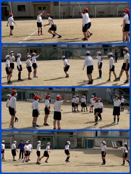 今年度、2クラスに分かれた6年生ですが、今日の体育は合同で。