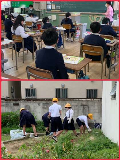 環境委員会の5年生、昨日と今日の休み時間に雑草抜きをしてくれました。ありがとう!そういう活動が学校を支えているのです。