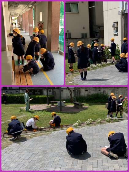 3年2組は理科の学習で、校庭に。見つけることはできたのかな?