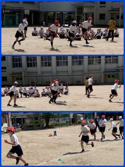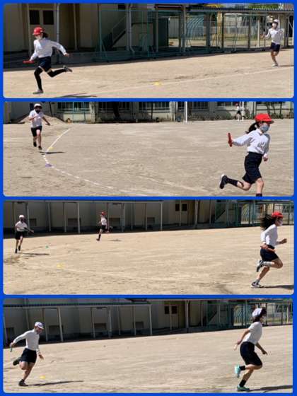今日の体育は「リレー」。チームも順番も自分たちで相談して決めていました。