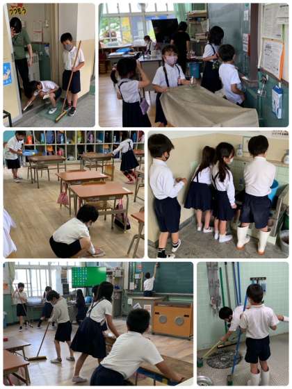通常授業に戻りましたので、いつもの清掃活動も再び始まりました。1年生も協力しながらとても上手にそうじをしていてびっくりしました。すばらしいです!