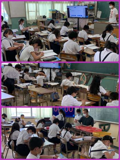 写真は3年生と5年生の少人数学習のようすです。