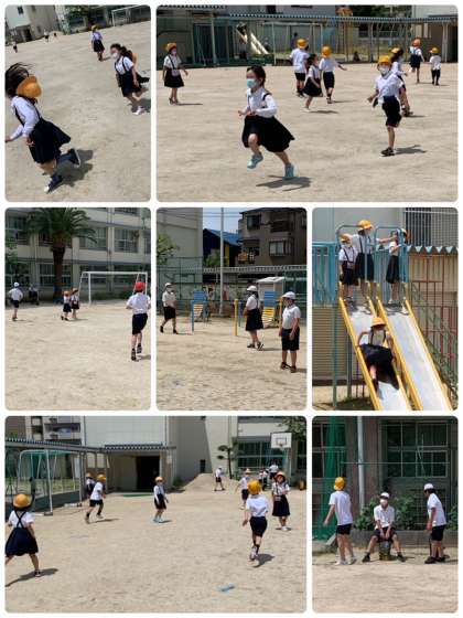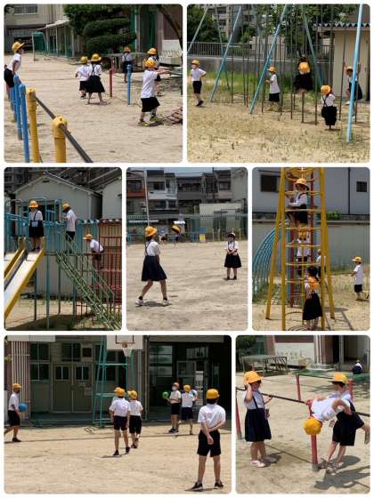 今日も暑かった〜。それでも元気な子どもたちと先生たち。