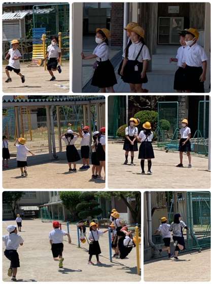 今日もミスト全開の運動場です。ミストを浴びながら、今日も元気な子どもたち。水分補給を忘れず、みんなで遊びましょう!