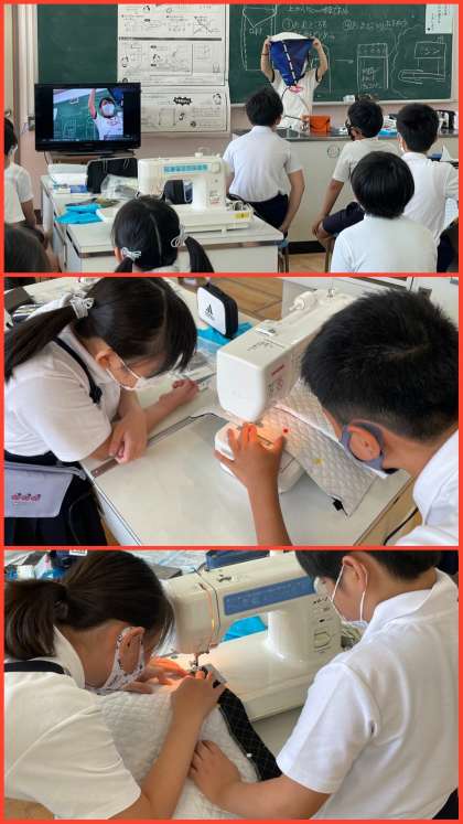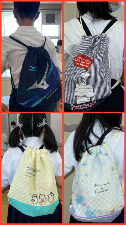 「難しい!」「どうやんの?」の声が多かったミシンの学習。ナップサックが完成しました。