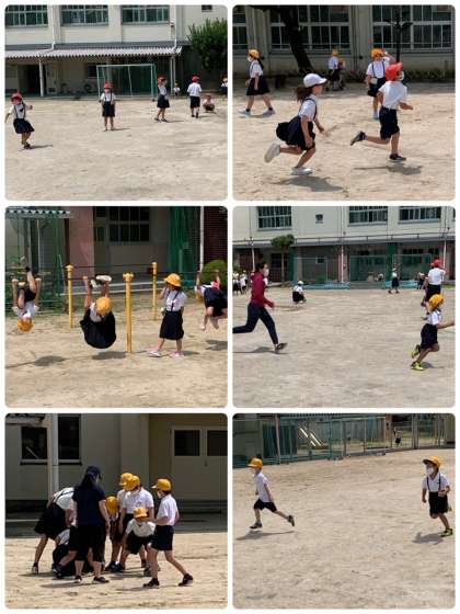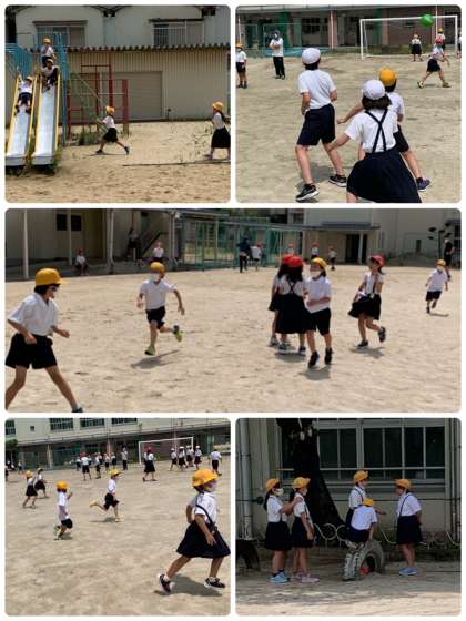 今日はなんだかむし暑く、お昼からはおひさまも。子どもたちは今日もハッスルです!