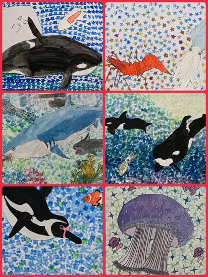 教室にもたくさん力作が掲示されています。直接お見せできなくて本当に残念です。