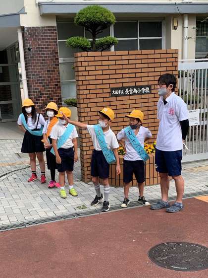 今週から『南小みんなで元気にあいさつ隊』は4年生のみなさんです。トップバッターは、1組の5名のみなさんでした。今日も気持ちのよい朝になりました。ありがとう!